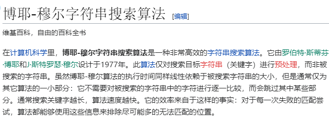 截图来自维基百科词条:博耶-穆尔字符串搜索算法