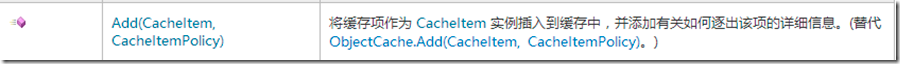 CacheItemPolicy类则表示缓存项的过期信息,只含有默认的构造函数。