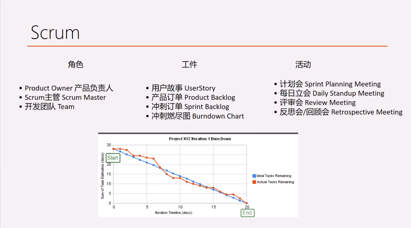 Sprint Planning Meeting:计划会,周期末开展,总结冲刺燃尽图,评估冲刺订单。