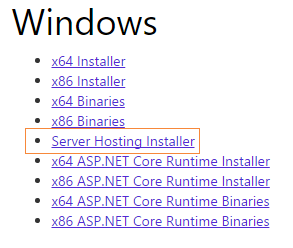 点击进入详情页后,找到 Windows 分类下的 Server Hosting Installer 链接,并点击下载