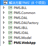 下面是各个层级之间具体的实现,首先创建以 项目名.层级名 命名的各个层次,除WebApp层为ASP.NET MVC项目外,其余均创建为类库项目。