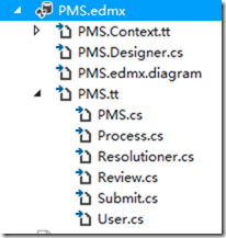 先建立模型层,新建ASP.NET 实体数据模型,关联到已经设计好的数据库,EF自动完成模型类的创建。