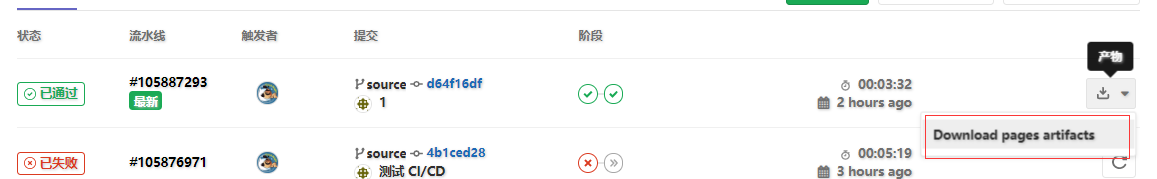- 最新产出文件的地址如图,注意修改项目 ID 和源码所在的分支名(项目 ID 可以再项目的设置中获得)。