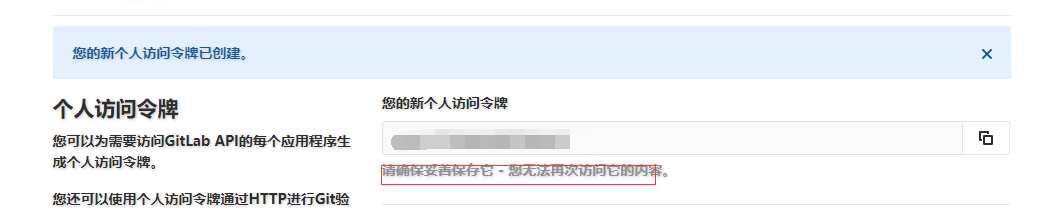 访问令牌仅能在生成后查看一次,注意妥善保存。