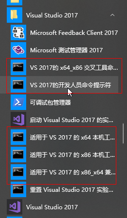 打开 Visual Studio安装时附带的命令行工具。(任选一个即可,推荐第一个)