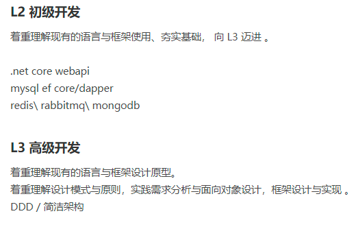 在技术方面,我在框架设计方面有了很大话语权,同时得益于领导对新技术的拥抱,得以主导引入各种开源框架和辅助工具,到我离职的时候,已经建成了代码规范明确、GitFlow清晰、DevOps便捷的整套开发体系。这期间我对 .NET Core 的源码有了一定的研究,DevOps 落地经验丰富,云原生方面的技术栈也有了一点实践,在这接近两年的时间,技术能力大约进阶到了L3和L4的交界处。