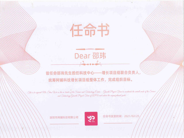 管理方面,2020 年 8 月被派遣驻扎在深圳主持深圳的招聘和项目开发工作,手下有六人的开发小团队,并于 2021 年 2 月 25日被任命为“增长项目组负责人”,统筹组织增长类项目的开发。
